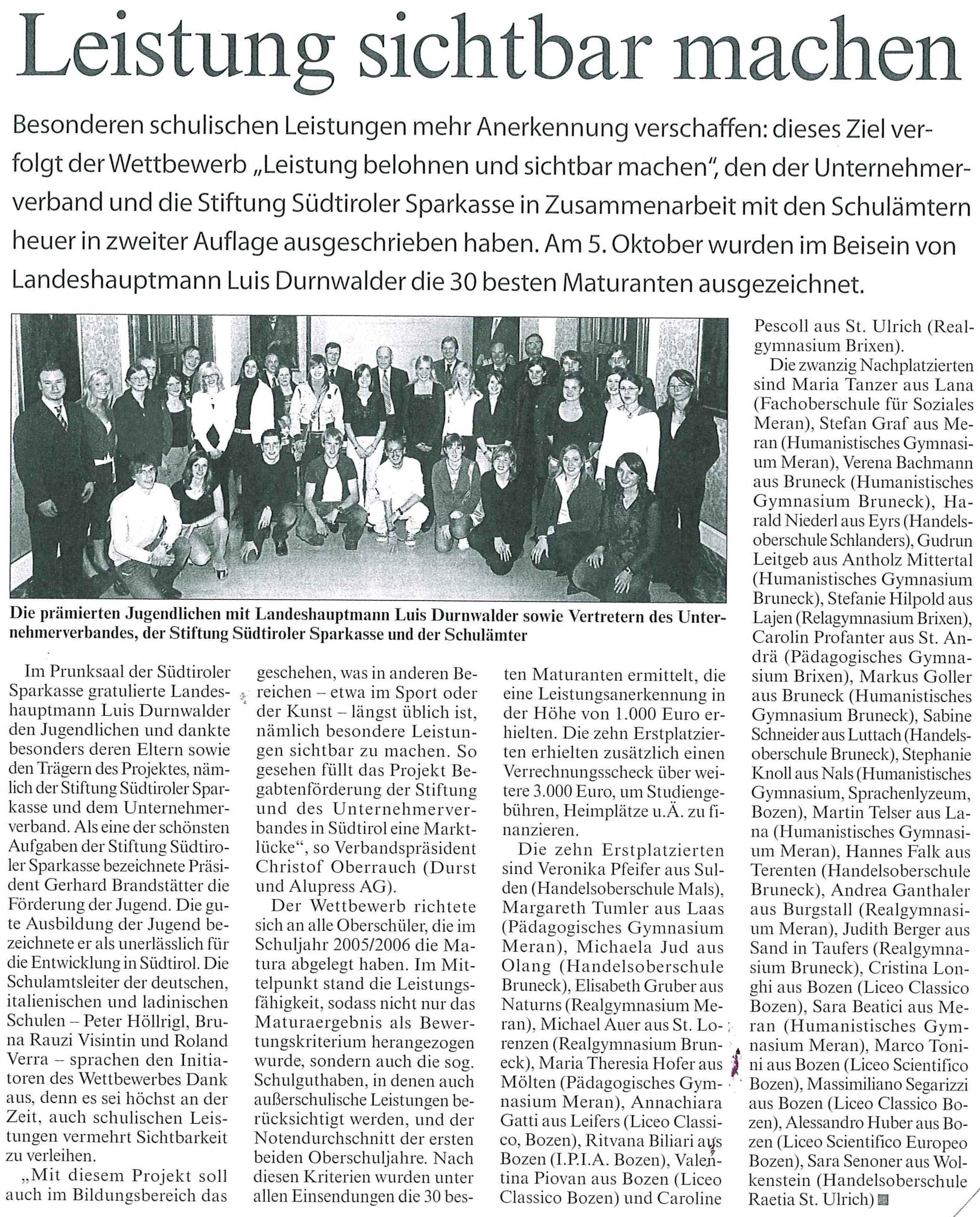 Südtiroler Wirtschaftszeitung, 15.09.2006