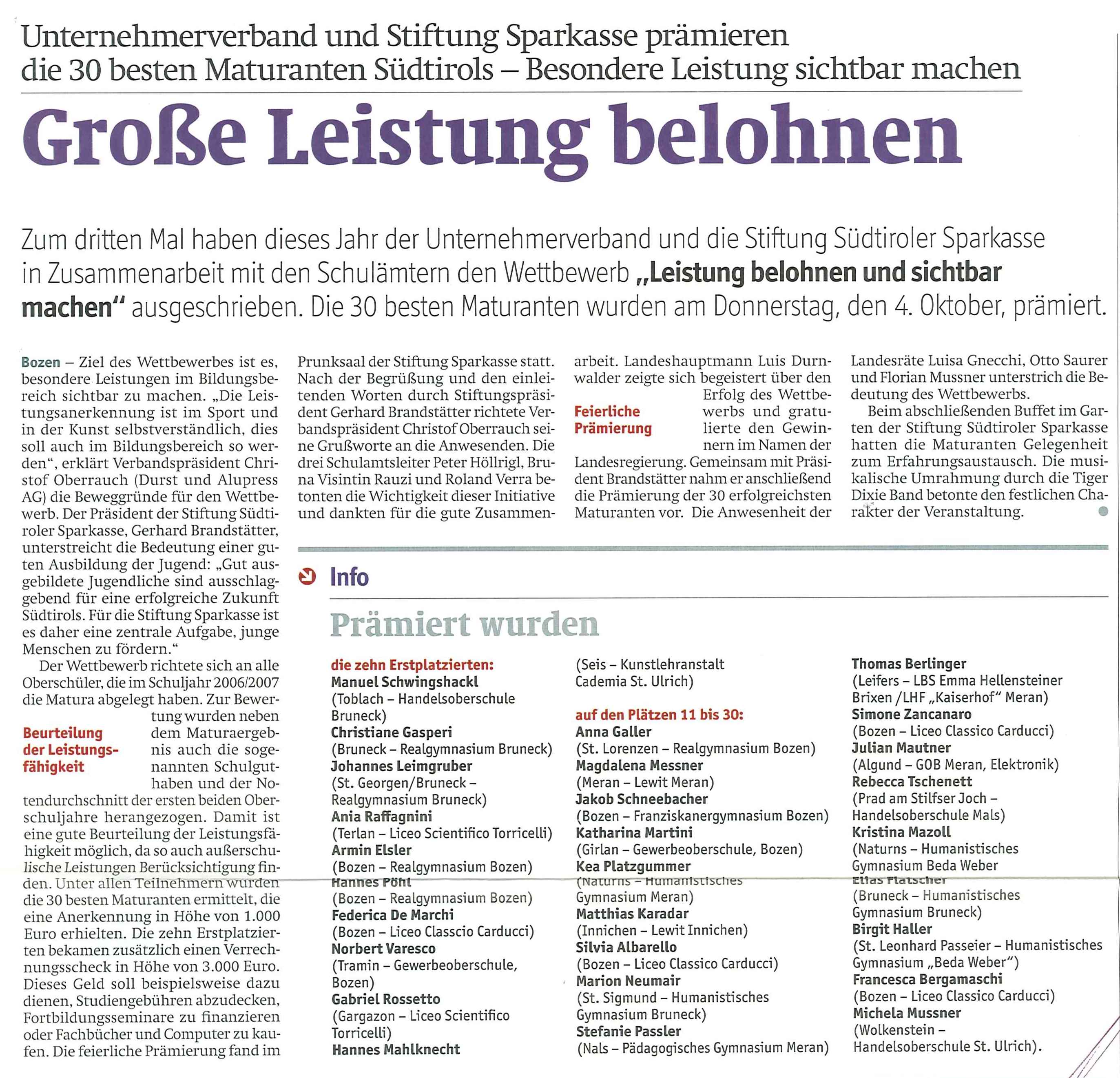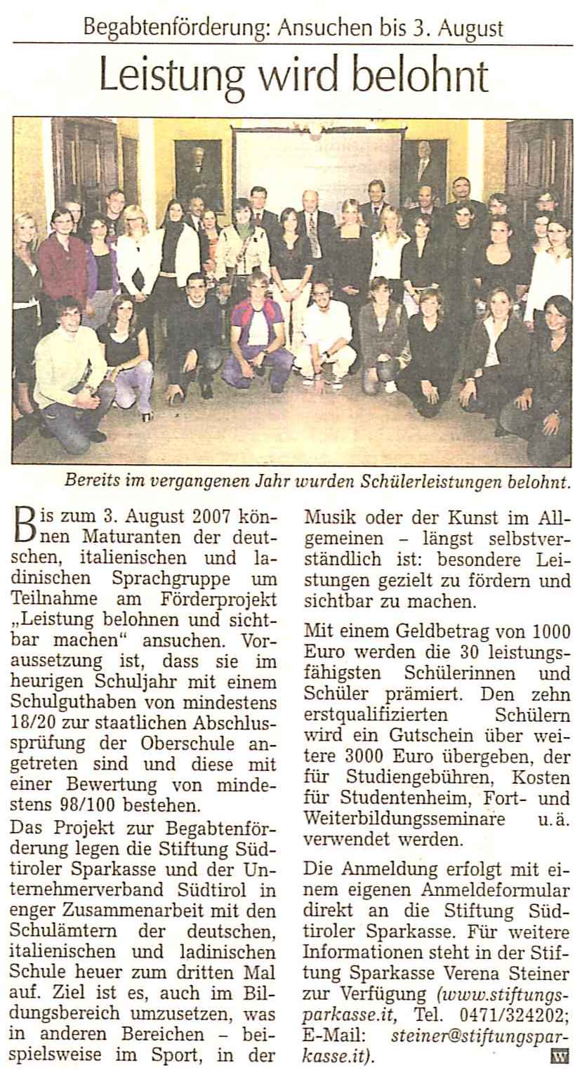 Südtiroler Wirtschaftszeitung, 05.10.2007