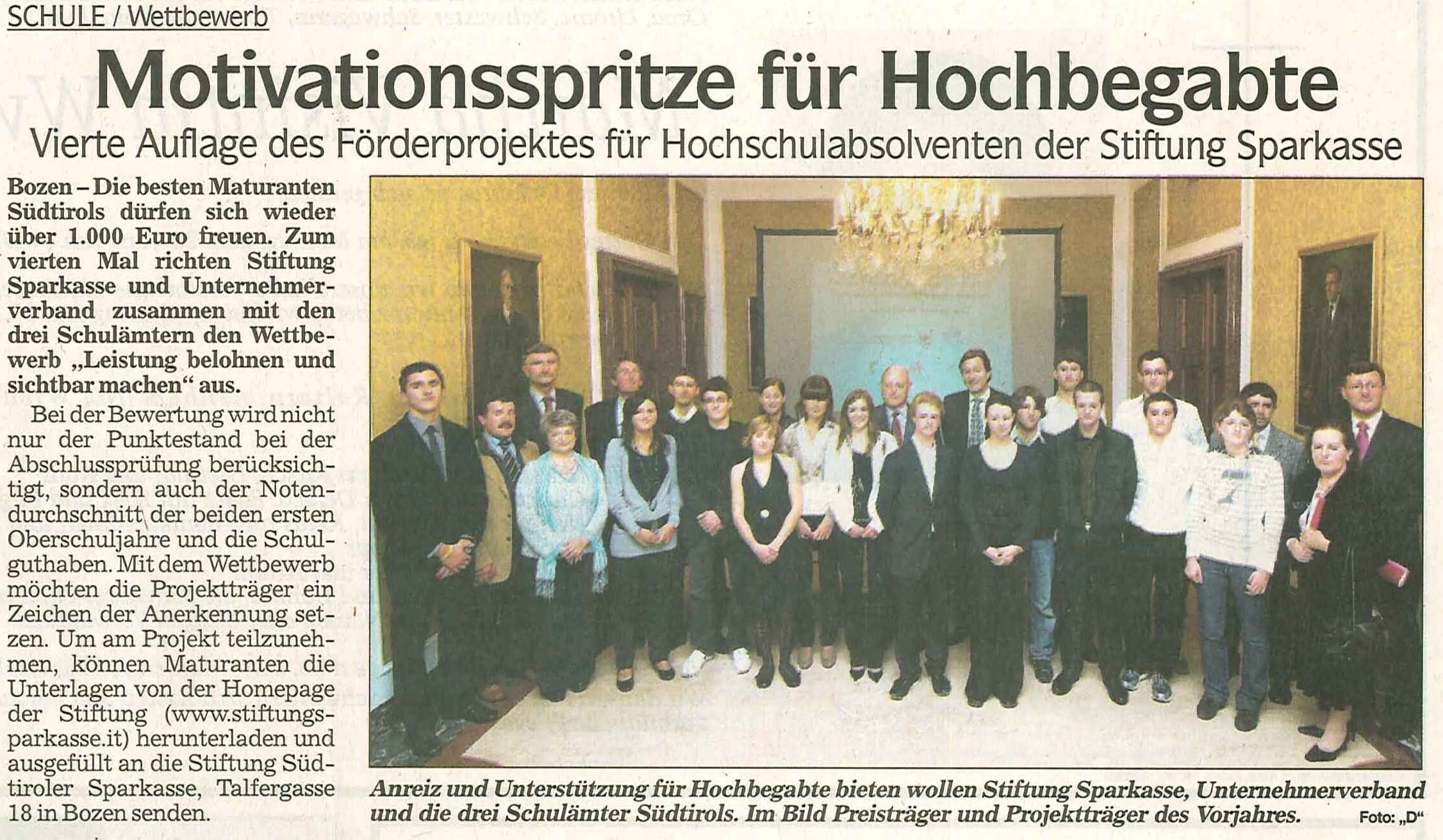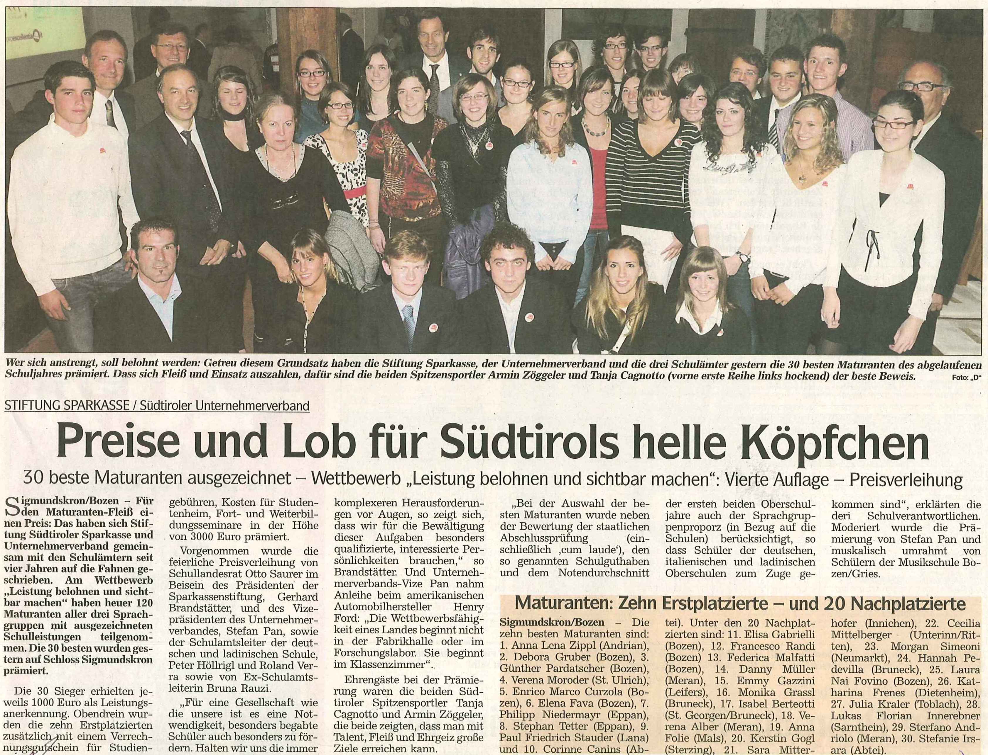 Die besten Maturanten Südtirols 2008